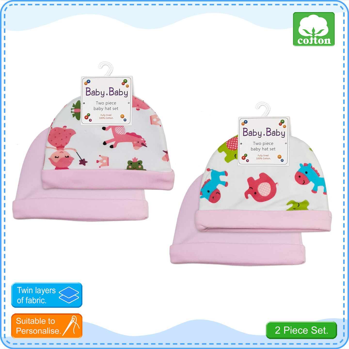 100% Cotton – 2 Pack Twin Layer Baby Hat.