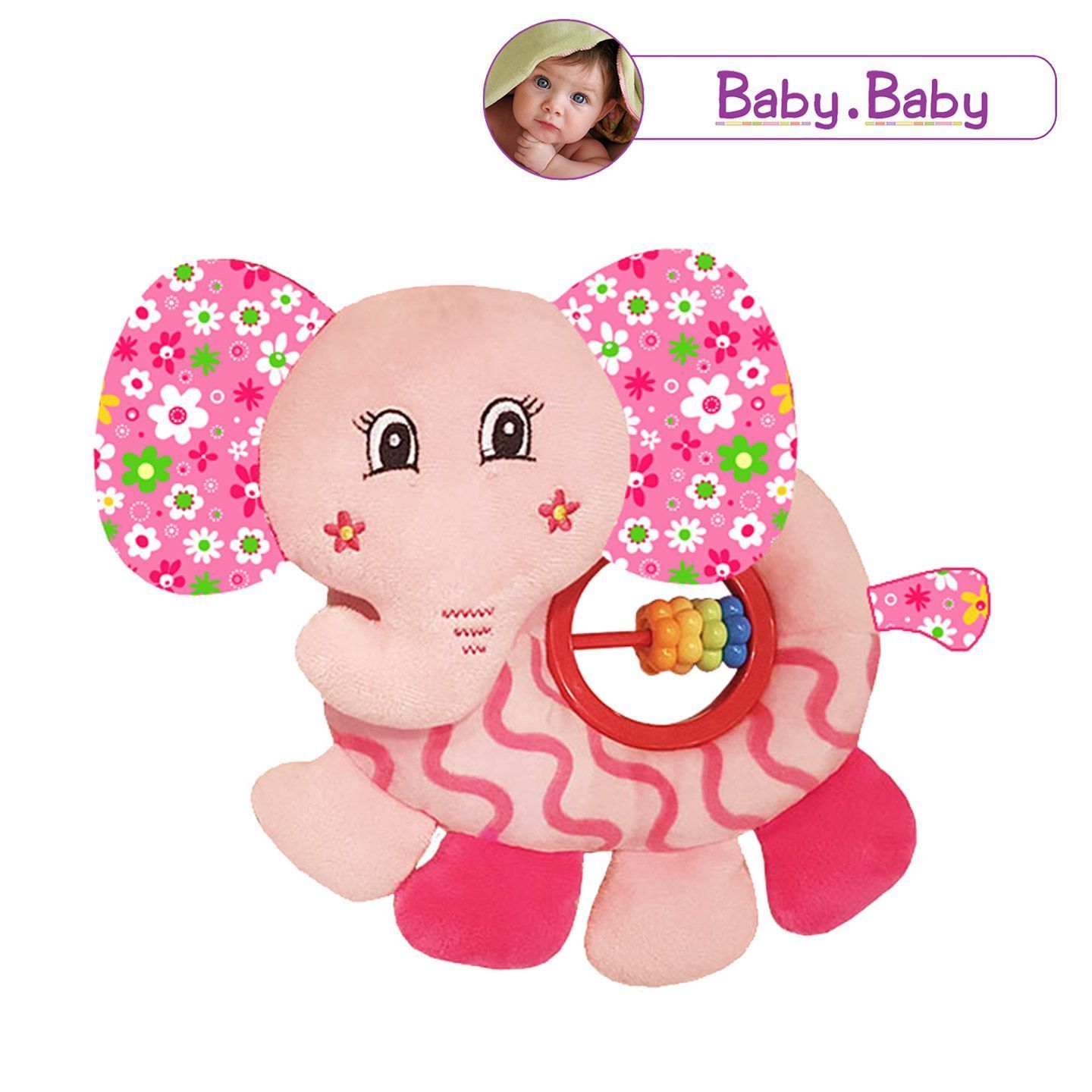 Comes with internal rattle in head & play beads for the tummy, adorable print design.