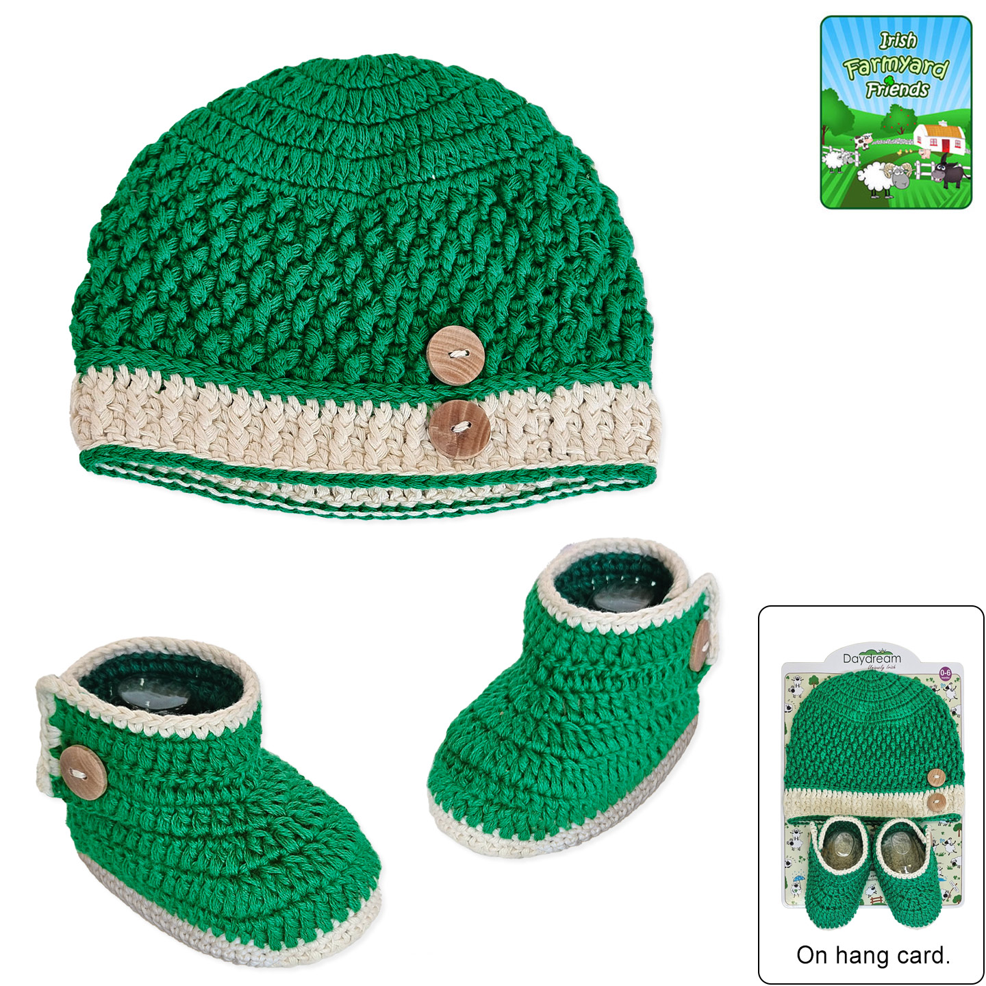 Comes with adorable buttons on the hat and booties. Lovely vivid green colour.