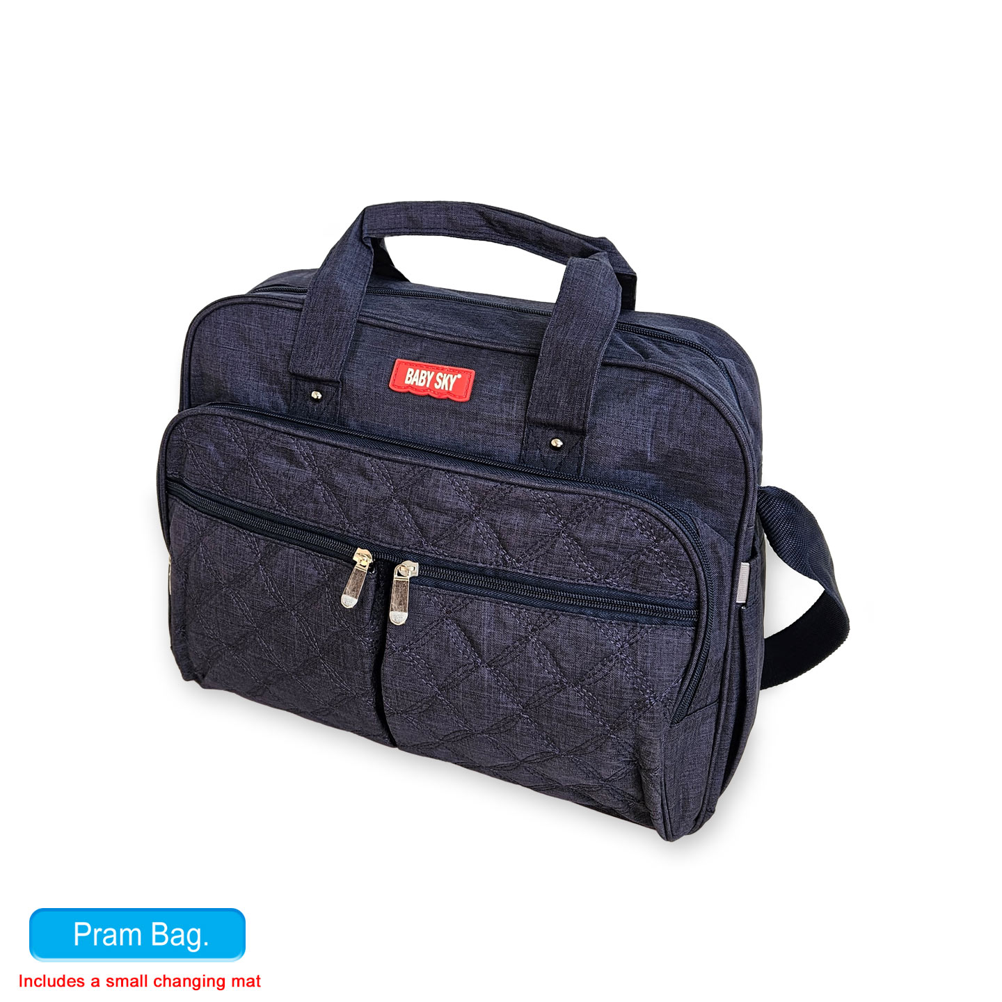 Introducing our Baby Sky Navy Denim Pram Bag.