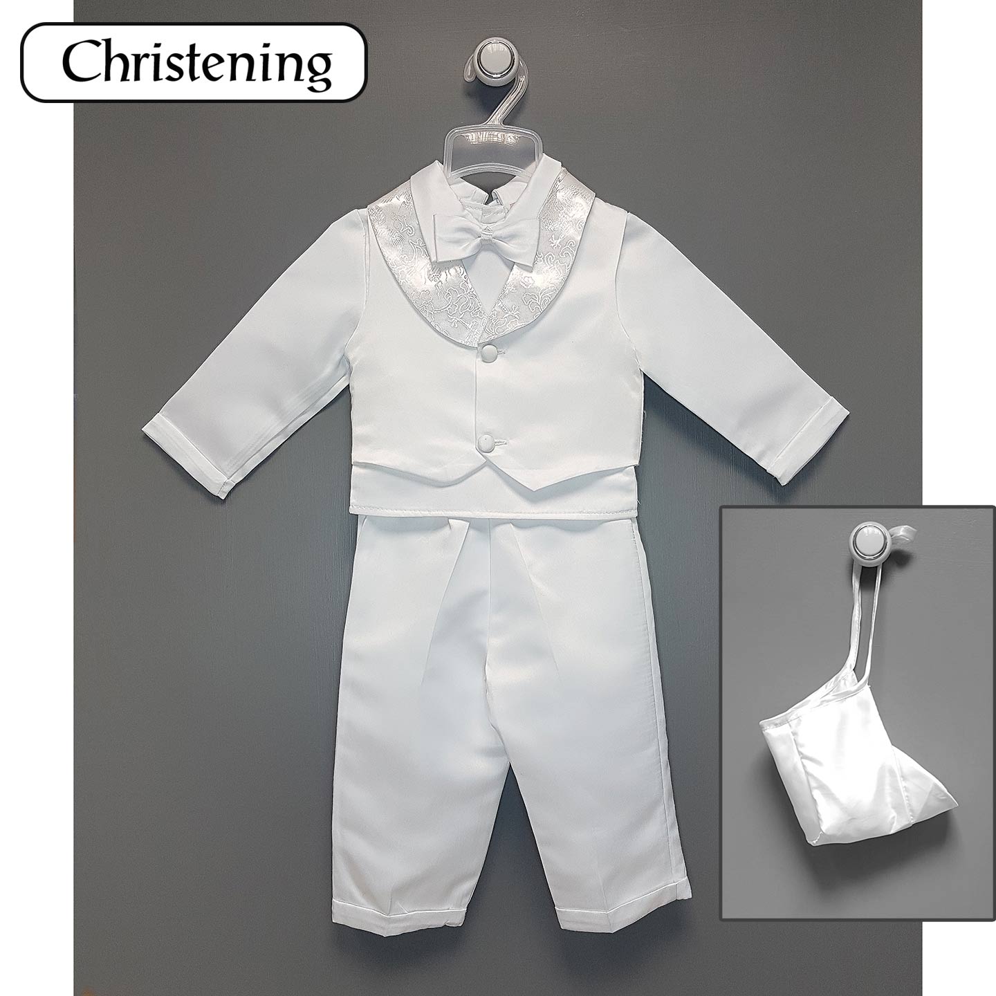 Set includes: Trousers, shirt with bow tie attached, waistcoat & hat.