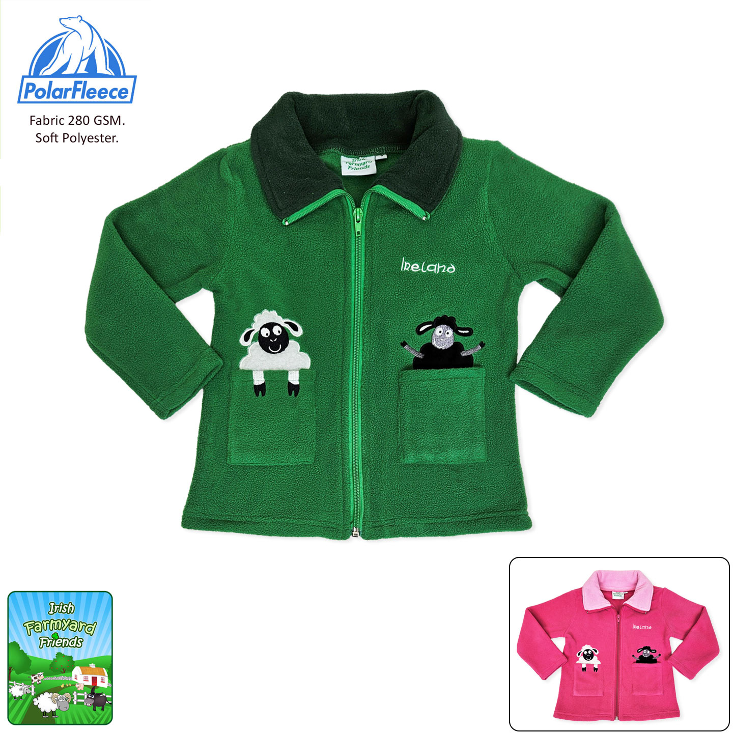 Full front zip, pockets, 3D Sheep/Ram motif, contrasting colours. Super soft to the touch.