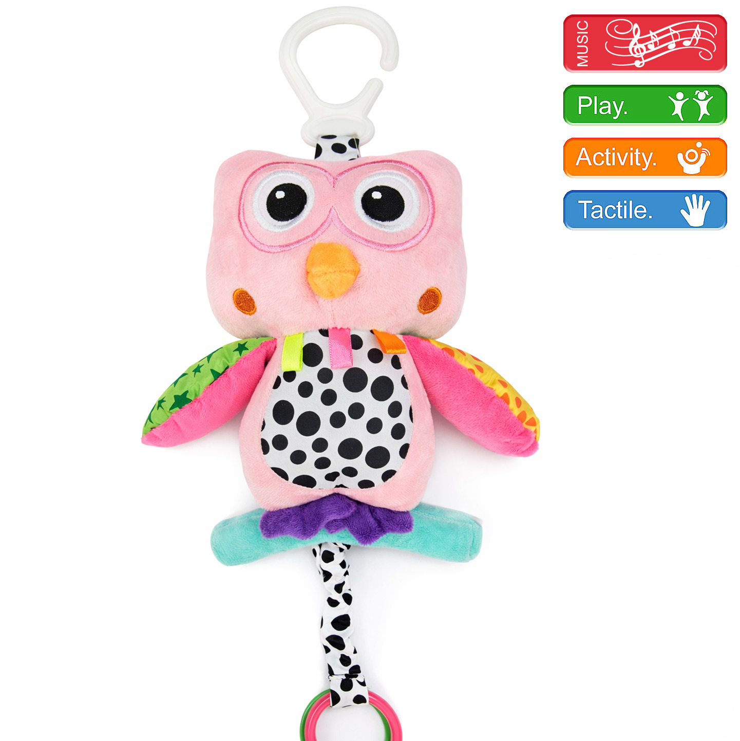 Pink Owl toy comes with crinkle wings, pull musical cord and a hanging hook.
