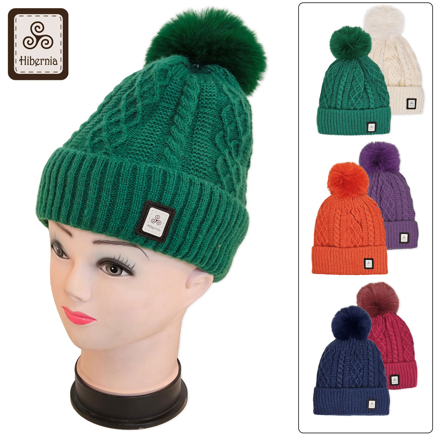 Fully fur lined, super soft knitted hat with matching faux fur pom pom